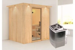 KARIBU Bosse 1 Saunahaus, Terragrau, Fichte, 231x273x235 Cm, Mit Vorraum Und Fronteinstieg