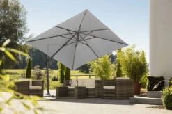 Mit diesem Sonnenschirm verbinden Sie tolles Design mit leichter Handhabung – perfekt für jeden Garten.