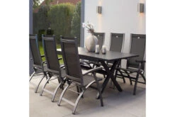 HARTMAN Fontaine Esstisch, Anthrazit/beige, Aluminium/Teak, 220x100cm, U-Gestell, FSC Teak