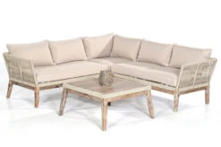 SUNNY SMART Bella Loungemöbel, Sand, Alu/Akazienholz/Polyrope, Inkl. Dekokissen, Inkl. Polster