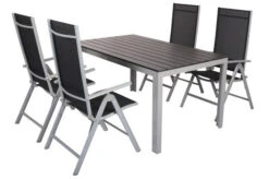 VILLANA Esstischgarnitur, Alu Pulverbeschichtet / FSC Akazienholz, 6 Personen, 180 X 90 Cm