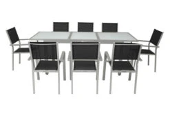 VILLANA Esstischgarnitur, Silber/schwarz, Alu/Textil, Tisch 160/220 Cm, 8 Stapelstühle