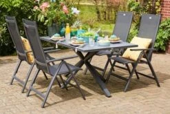 HARTMAN Da Vinci Multipositionssessel, Xerix/anthrazit, Alu/Textilene, Mit FSC-Teak-Armlehnen