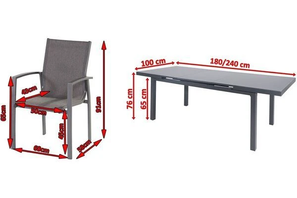 1x OUTFLEXX® Premium Ausziehtisch anthrazit/grau, ca. 180/240 x 100 x 76 cm