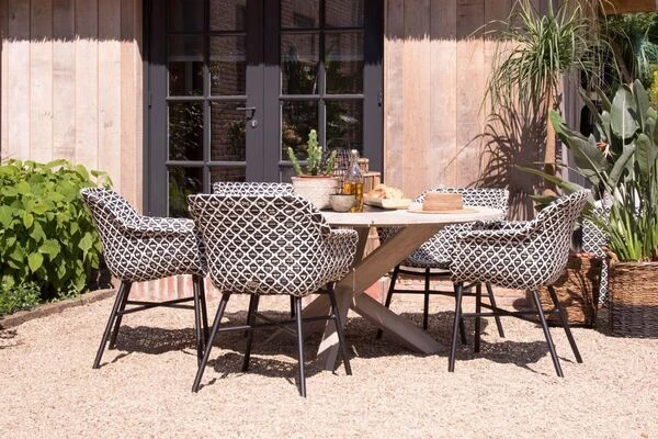 Der „Delphine“ Armlehnensessel mit Maßen von ca. 63 x 61 x 83,5 cm (L/B/H) bietet außerordentlichen Sitzkomfort. Das bequeme, um ein Aluminiumgestell geflochtene Kunststoffgeflecht aus Polypropylen passt sich perfekt Ihrem Körper an und sorgt so für ein rundum angenehmes Sitzgefühl. Armlehnen sorgen dabei für zusätzlichen Komfort und machen das Sitzen zu einem wahren Erlebnis, während die Fußkappen an den Stuhlbeinen unschöne Kratzer auf Ihrem Terrassenboden vermeiden.