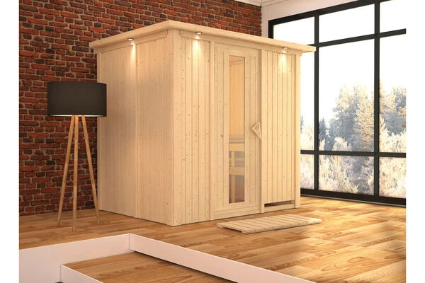 Sauna Bodin aus Fichtenholz mit Fronteinstieg inkl. Energiespartür in verschiedenen Ausführungen von KARIBU