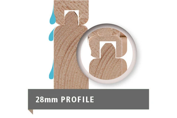 - Doppelte Nut- und Federverbindung und wasserabweisende Profilierung