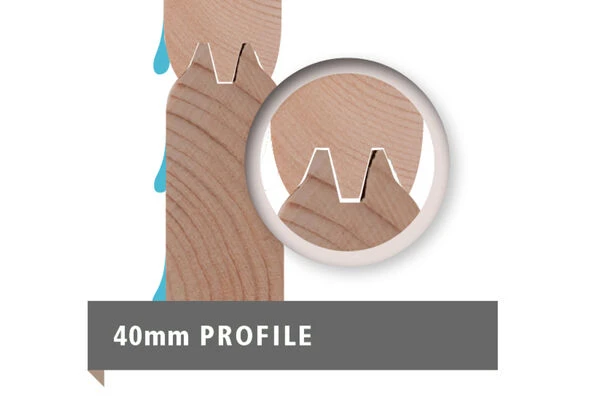 - Doppelte Nut- und Federverbindung und wasserabweisende Profilierung