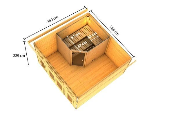 1x KARIBU 38 mm Saunahaus Mainburg 3 SET B mit Doppelflügeltür und Vorraum, in verschiedenen Ausführungen inkl. Montageanleitung und -material