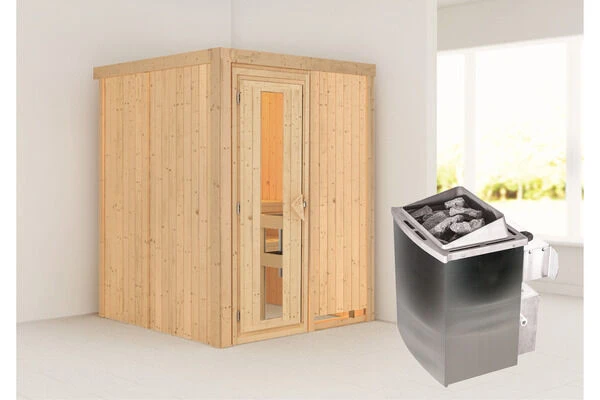 Sauna Norin aus Fichtenholz mit Fronteinstieg inkl. Energiespartür in verschiedenen Ausführungen von KARIBU