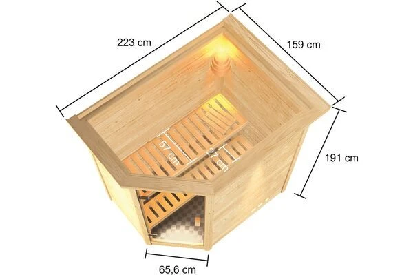 - 1x Sauna Jella inkl. Tür, Montagematerial, Anleitung und wahlweise Extras
