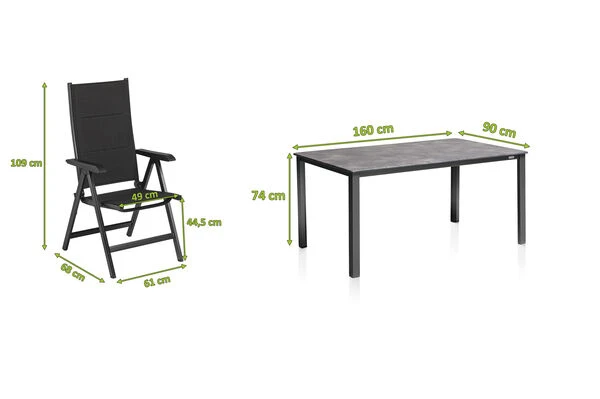 Der rechteckige Tisch für 4-6 Personen bietet Platz für eine ganze Familie. Die anthrazitfarbene Tischplatte besteht aus hochwertig verarbeitetem Kettalit und wird von einem soliden Gestell aus Aluminium in anthrazit getragen. Die positiven Eigenschaften von Aluminium sind zahlreich: Es ist leicht, wetterfest, stabil und elegant. In Kombination mit der Stabilität und der kratzfesten Oberfläche der Kettalit Tischplatte wird aus diesem Möbelstück das Highlight für Ihren Garten. Mit dem Multipositionssessel in der Größe von ca. 68 x 61 x 109 cm aus der BasicPlus Padded Serie bequem durch den Sommer. Mittels Rasterschiene lässt sich der Sessel leicht in 4 verschiedene Positionen bringen – so wird der Komfort eines Liegestuhls direkt integriert. Das solide und formschöne Gestell besteht aus edlem, anthrazitfarbenen Aluminium. Das witterungsbeständige Material ist durch seine Flexibilität und seine zusätzliche Polsterung (padded) auch ohne Auflagen sehr bequem. Das formstabile, anthrazite Gewebe nimmt kein Wasser auf, ist atmungsaktiv, UV-Beständig und trocknet nach einem kurzen Schauer sehr schnell – insgesamt also der perfekte Begleiter in Ihrem Garten. Dank der leichten Materialien und des Klappmechanismus lässt sich der Stuhl leicht zu handhaben – wenn er nicht benötigt wird können Sie ihn platzsparend verstauen.