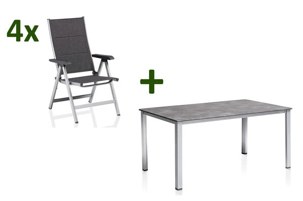 KETTLER Cubic/BasicPlus Padded Esstischgarnitur, silber/anthrazit, Alu/Textilene, ca. 160×90 cm, 4 Multipositionssessel