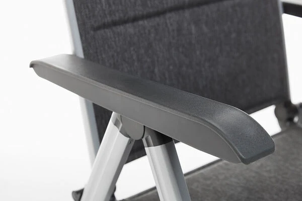 Mit dem Multipositionssessel aus der BasicPlus Padded Serie bequem durch den Sommer. Mittels Rasterschiene lässt sich der Sessel leicht in 4 verschiedene Positionen bringen – so wird der Komfort eines Liegestuhls direkt integriert. Das solide und formschöne Gestell besteht aus edlem, silberfarbenem Aluminium. Das witterungsbeständige Material ist durch seine Flexibilität und seine zusätzliche Polsterung (padded) auch ohne Auflagen sehr bequem. Das formstabile, anthrazite Gewebe nimmt kein Wasser auf, ist atmungsaktiv, UV-Beständig und trocknet nach einem kurzen Schauer sehr schnell – insgesamt also der perfekte Begleiter in Ihrem Garten. Dank der leichten Materialien und des Klappmechanismus lässt sich der Stuhl leicht zu handhaben – wenn er nicht benötigt wird können Sie ihn platzsparend verstauen.