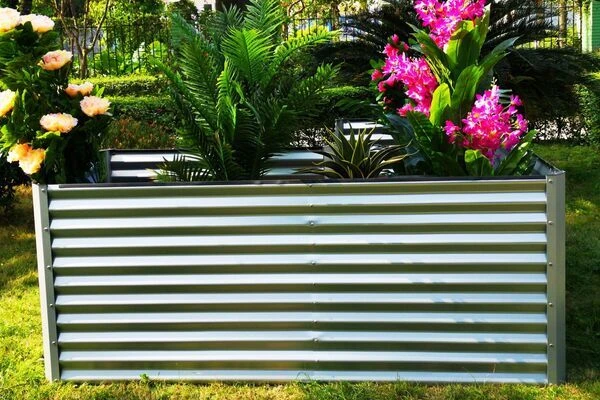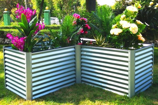Eck-Hochbeet von OUTFLEXX® in silber, ca. 210 x 210 x 90 x 84 cm