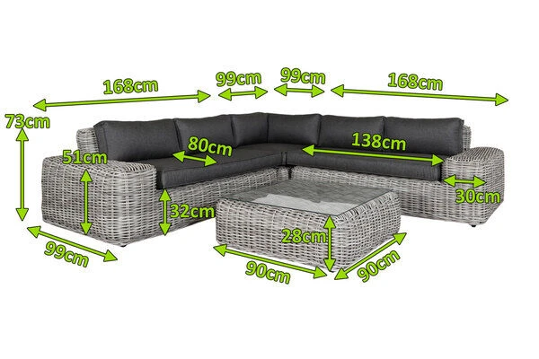 | Rostfreie Aluminiumkonstruktion Das für das Untergestell verwendete und vom Polyrattan umflochtene rostfreie Aluminium ist ganzjährig für den Außeneinsatz geeignet und überzeugt durch seine Langlebigkeit. | |