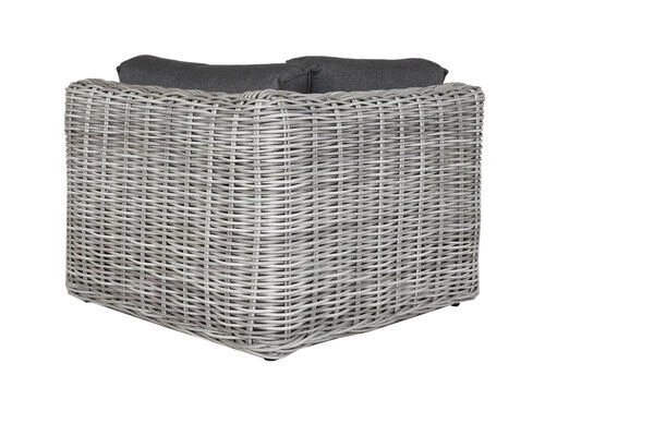Polyrattan – ein zeitloser Klassiker – Die hier verwendeten Polyrattan Fasern in white faded grey bringen neue Farbe in Ihren Garten. Kombiniert mit den Kissenbezügen in Anthrazit harmonieren sie perfekt. Als zeitloser Klassiker wird Polyrattan Ihren Ansprüchen an Qualität in allen Belangen gerecht. Polyrattan ist strapazierfähig, pflegeleicht und witterungsbeständig, so dass diese Loungegarnitur problemlos das ganze Jahr über im Freien stehen kann.