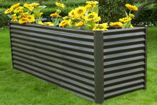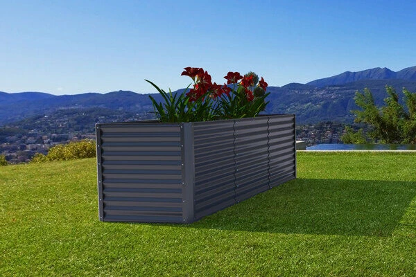 Das anthrazitfarbene Hochbeet aus dem Material Zincalume, hat die Maße von ca. 180 x 90 x 84 cm und ist dank seines Gewichts von nur ca. 15,7 kg sehr flexibel und kann kinderleicht umgesetzt werden. Die anthrazitfarbene Hochbeetverlängerung aus dem Material Zincalume, hat die Maße von ca. 80 x 90 x 84 cm. Beim Werkstoff „Zincalume“ handelt es sich um ein mit Zink und Aluminium beschichtetes Stahlblech, das durch die Beschichtung jahrelang resistent gegen Umwelt- und Witterungseinflüsse ist. Seine Lebensdauer ist vier mal länger als bei galvanisiertem Stahl.