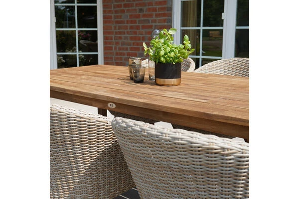 Der Tisch besteht aus 100% FSC-Akazienholz. Durch die FSC Zertifizierung wird sicher gestellt, dass das Holz aus verantwortungsbewussten Quellen stammt. Akazienholz wird gerne im Gartenmöbelsektor verwendet, wo es sich vor allem durch seine Widerstandsfähigkeit und Härte sowie seine elegante Maserung auszeichnet.