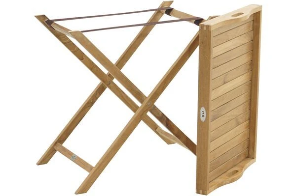 Dieses Tablett mit praktischem Tablettständer zeichnet ein hohes Maß an Komfort und eine hervorragende Verarbeitung besten Teakholzes aus.