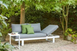 1x SIENA GARDEN Avenia Dining-Bank/Liege, matt weiß-grau/stone grey, Aluminium, 73x195x70 cm, inkl. Sitz-und Rückenkissen (J04044)