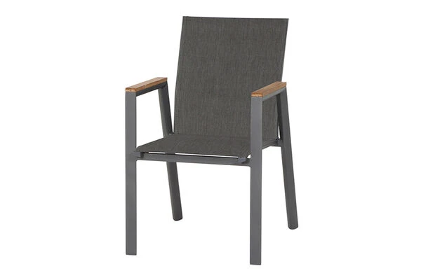 8x SIENA GARDEN Gomera II Stapelsessel, matt graphit, Alu/FSC-Teak/Texfabric, ca. 63,5x57x87,5 cm