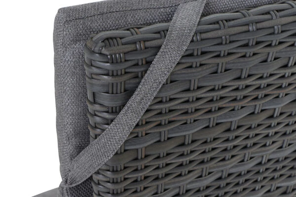 Bei Wind und Wetter sorgt die Witterungsbeständigkeit und Pflegeleichtigkeit der verwendeten Materialien für den nötigen Schutz. Das Untergestell des Sessels besteht aus pulverbeschichtetem Aluminium, und ist stabil sowie widerstandsfähig. Aufgrund des geringen Gewichts (ca. 11,5 kg) lässt sich das Möbelstück auch schnell an Ihren Lieblingsplätzen im Garten, auf der Terrasse oder auf dem Balkon platzieren. Das Aluminiumgestell wird mit halbrundem GARDINO®-Geflecht aus Polyethylen bespannt. Diese Faser trocknet besonders schnell, ist schmutzunempfindlich und erzeugt mit ihrer natürlichen Optik einen edlen und modernen Look, der jeder Gartengestaltung ein besonderes Flair verleiht. Die gemütlichen und pflegeleichten Sitzpolster sind farblich passend auf das Geflecht abgestimmt. Bei Verschmutzung sind die Bezüge des Sessels leicht zu reinigen – bitte beachten Sie, dass das Kopfteil des Sessels nicht abnehmbar ist. Wir empfehlen dieses vorsichtig per Hand zu waschen.