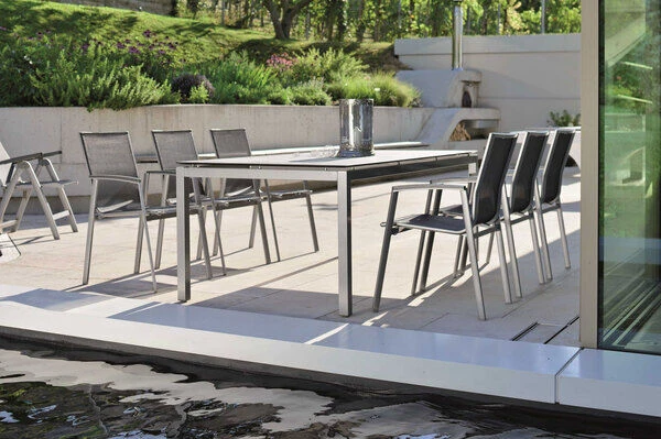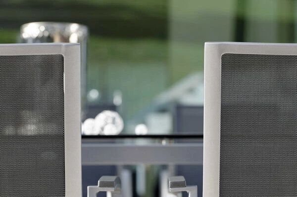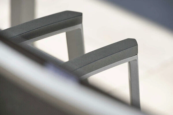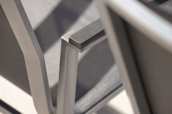 Stapelsessel New Top aus Aluminium in der Farbe graphit und Textilene in silbergrau von Stern