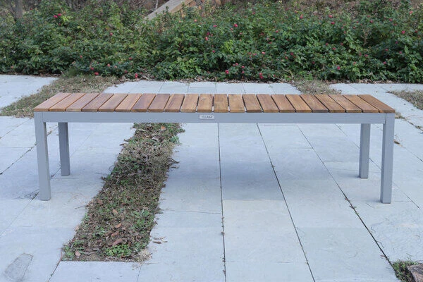 1x Villana Bank ca. 165 x 40 x 45 cm, aus silberfarbenem Aluminium und FSC-Akazienholz